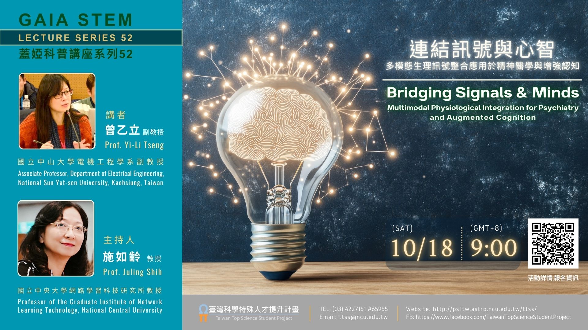 《蓋婭科普講座系列 52》—— 「連結訊號與心智:多模態生理訊號整合應用於精神醫學與增強認知」